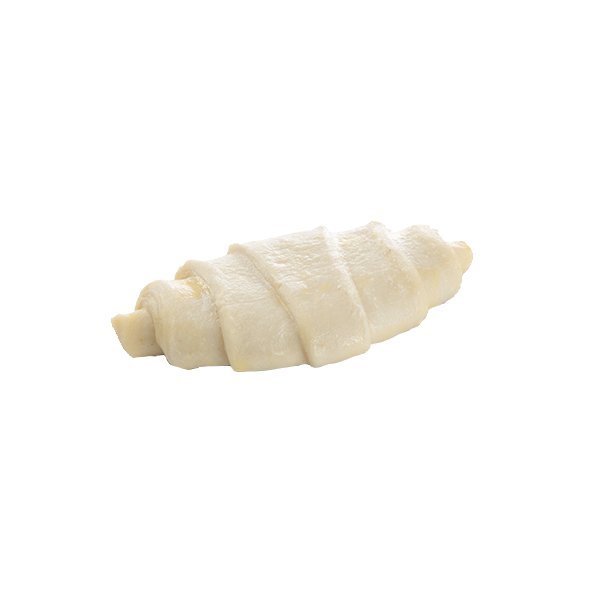 Voorgerezen mini roomboter croissant met een rechte vorm, klaar om te bakken en daarna heerlijk van te genieten.
